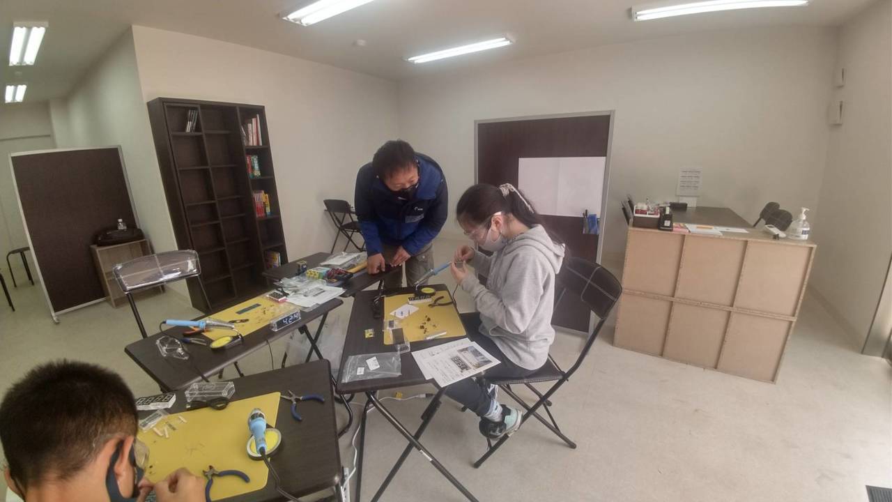 DOUIKU~導育塾~【東村山】数学・英語の専門性が高く、ミライを見据えた進学塾。授業スタイルは、完全1対1の個別指導。4/24(金)に、電子工作教室を開催し、二人の生徒が参加してくれました!現役のエンジニアの方に教えてもらいながら、はんだ付けをし、デジタル時計を作りました!作業時間は、2時間30分でしたが、最後まで集中していました。「すごい楽しい」「また、やりたい」など、子どもたちは、もの作りの面白さを実感してくれたようです!