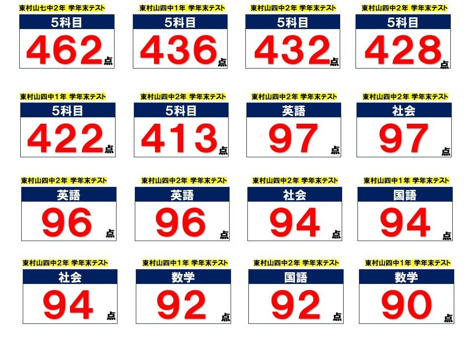2026年学年末テスト結果です!、よく頑張りました!!