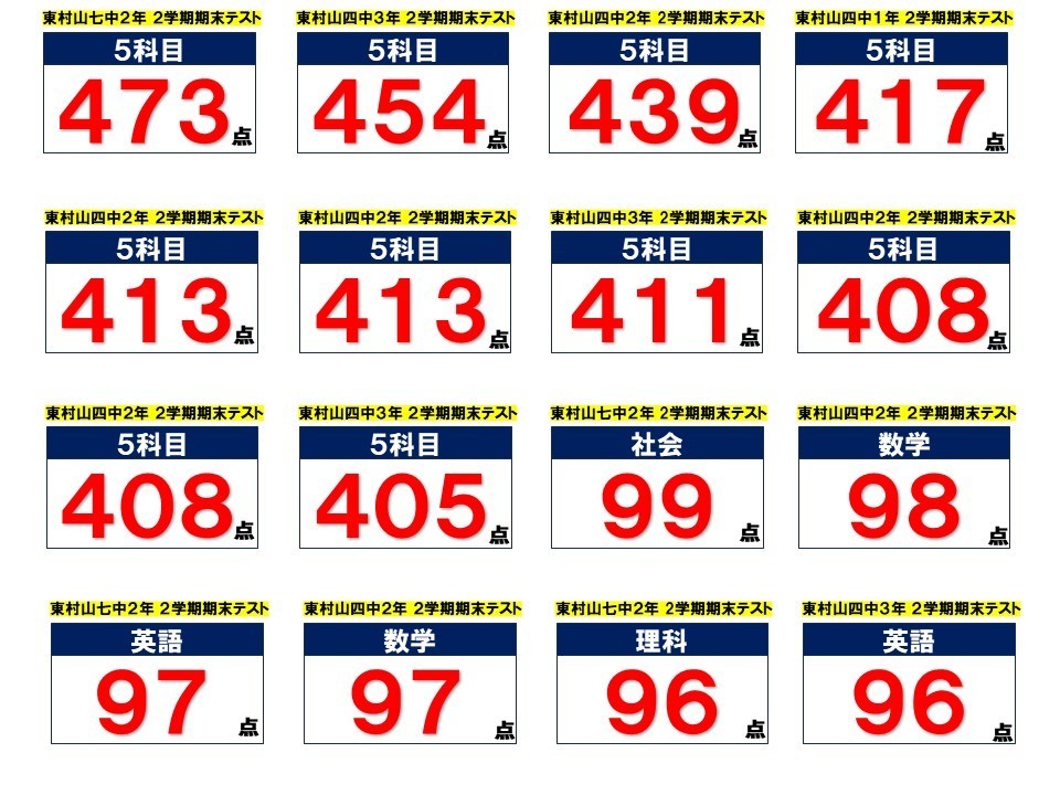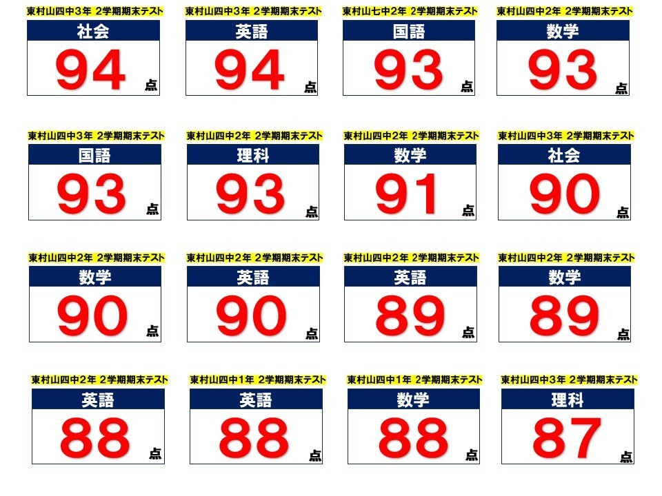 2025年2学期期末テスト結果です!、よく頑張りました!!