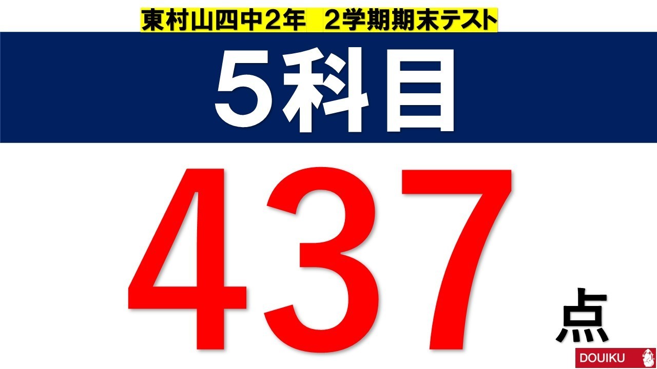 ■11/25(月)★結果⑦★期末テスト結果!!導育塾【東村山】数学・英語の専門性が高く、一人ひとりに向き合う進学塾。導育塾 東村山教室、頑張りました!!、東村山四中2年生の5科目合計点数「437点」!!