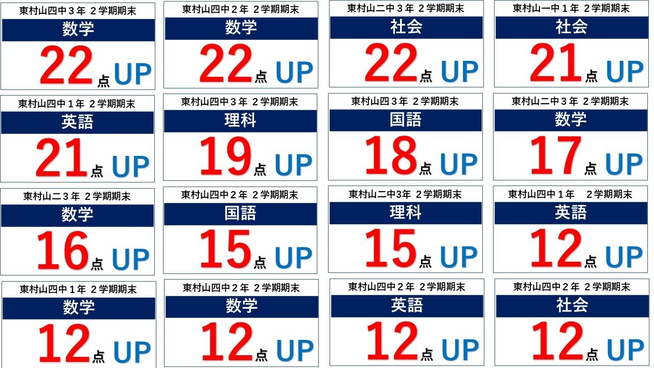 ■11/29(金)★結果⑨★期末テスト結果!!導育塾【東村山】数学・英語の専門性が高く、一人ひとりに向き合う進学塾。導育塾 東村山教室、東村山四中2年生が苦手な英語で「27点」UPを実現!!、すばらしいです!!