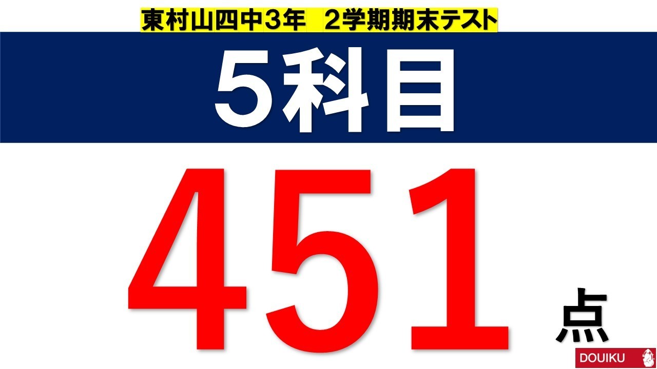 ■11/22(金)★速報⑤★期末テスト結果!!導育塾【東村山】数学・英語の専門性が高く、一人ひとりに向き合う進学塾。導育塾 東村山教室、よく頑張りました!!、東村山四中3年生の5科目の合計点数「451点」!!、すばらしい!!