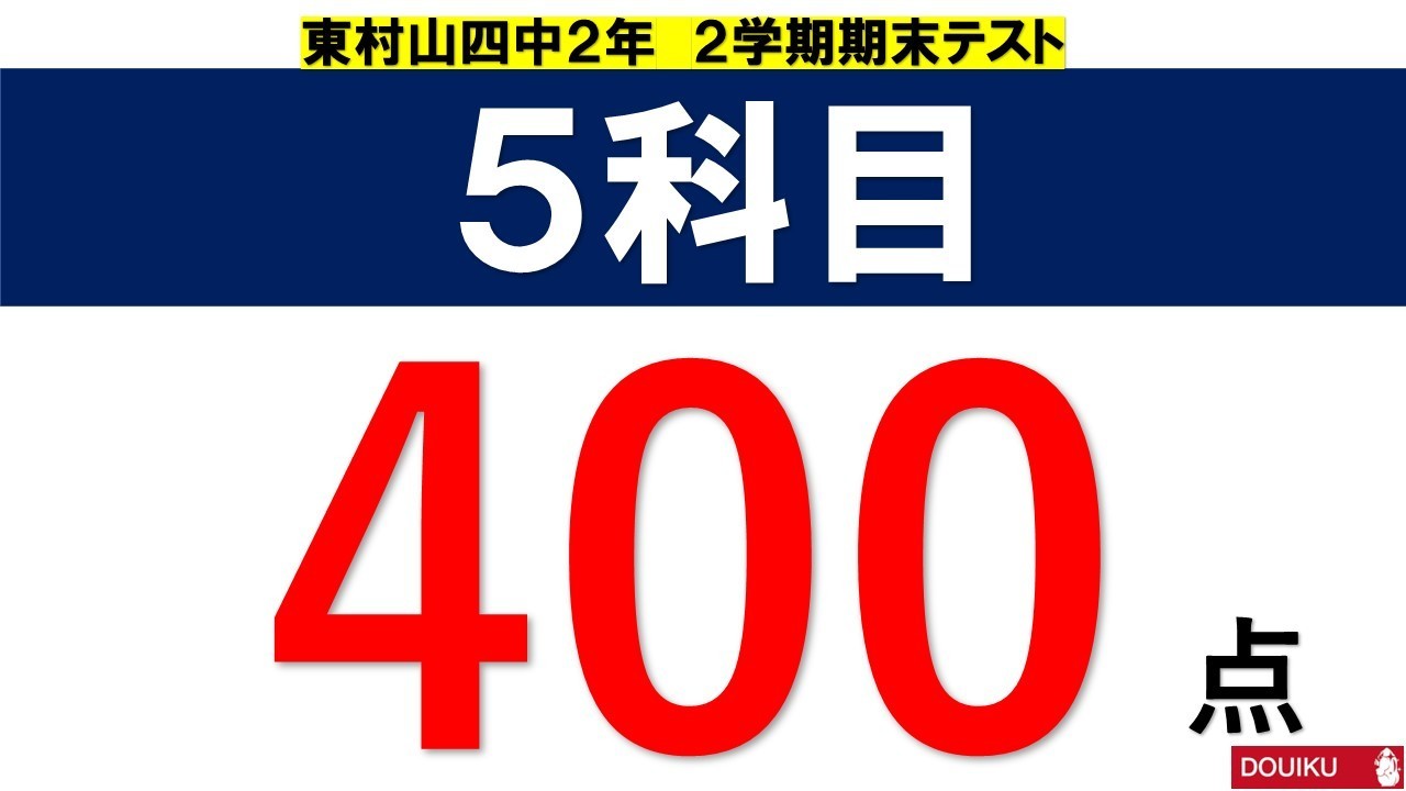 ■11/27(水)★結果⑨★期末テスト結果!!導育塾【東村山】数学・英語の専門性が高く、一人ひとりに向き合う進学塾。導育塾 東村山教室、東村山四中2年生!!、5科目の合計点「400点」獲得!!、よく頑張りました!!
