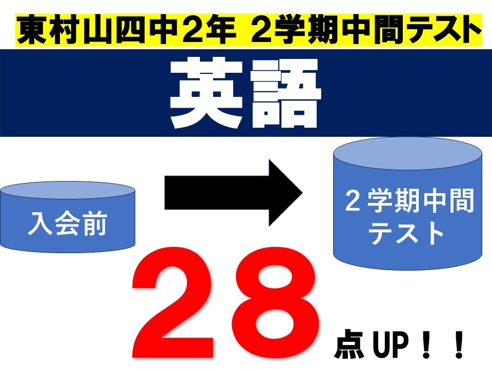 ■10/8(水)東村山四中2年生「英語:28点UP」!!導育塾【東村山】数学・英語の専門性が高く、一人ひとりに向き合りに向き合う進学塾、とんでもない成績向上!!、東村山四中2年生「英語:28点UP」すばらしい!!