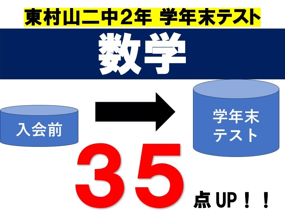 ■3/12(木)学年末テスト結果「数学:35点」UP!!導育塾【東村山】数学・英語の専門性が高く、一人ひとりに向き合りに向き合う進学塾、導育塾 東村山教室、すばらしい結果です!!、学年末テスト結果「数学:35点」UP!!、よく頑張りました!!、今後もさらなる成績向上を目指しましょう!!