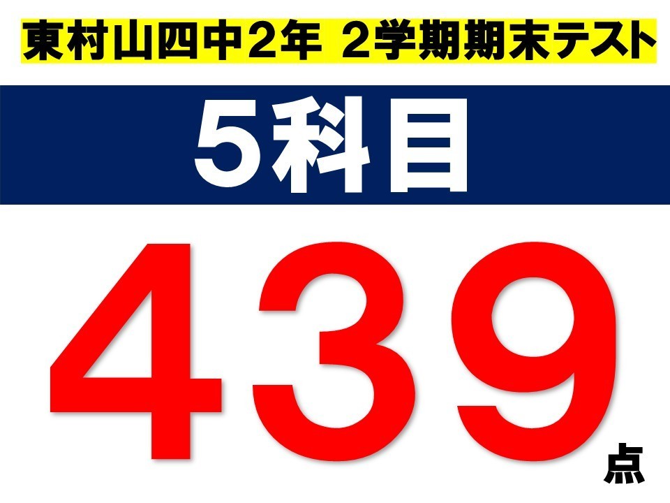 ■11/21(金)東村山四中2年生「5科目合計439点」獲得!!導育塾【東村山】数学・英語の専門性が高く、一人ひとりに向き合りに向き合う進学塾、導育塾東村山教室、すごい!!、東村山四中2年生の5科目合計「439点獲得」!!、すばらしい!!、よく頑張りました!!