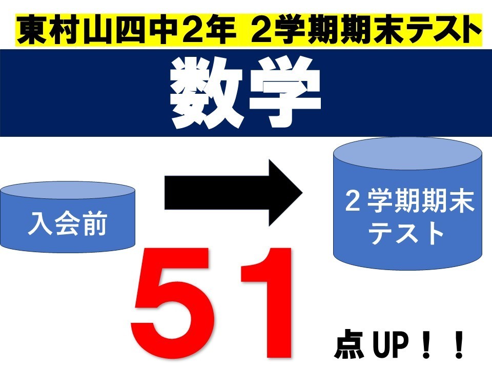 ■11/25(火)東村山四中2年生「数学:51点UP」!!導育塾【東村山】数学・英語の専門性が高く、一人ひとりに向き合りに向き合う進学塾、すばらしい結果です!!、よく頑張りました!!